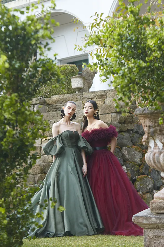 オフショルダーやボレロ、ホースヘアスカートなど、